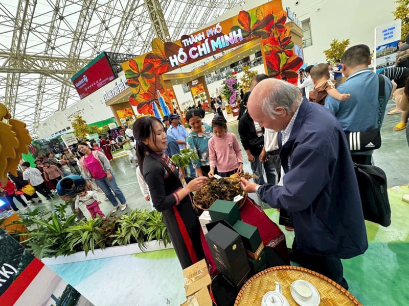 TP. Đà Nẵng quảng bá, giới thiệu sâm Ngọc Linh tươi tại Hội chợ Mùa Thu lần thứ Nhất, năm 2025. Ảnh: Bình An