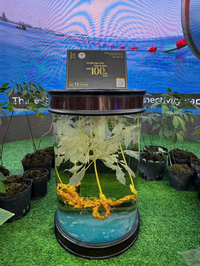 Trình diễn sâm Ngọc Linh 100 tuổi tại Hội chợ Mùa Thu. Ảnh: Bình An