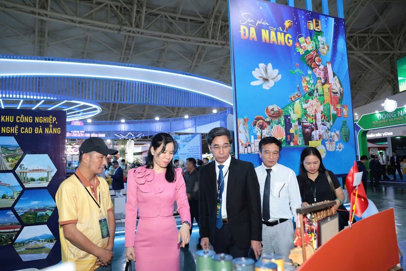 Phó Chủ tịch UBND TP. Đà Nẵng Trần Chí Cường tham quan gian hàng của thành phố tại Hội chợ Mùa Thu. Ảnh: Bình An