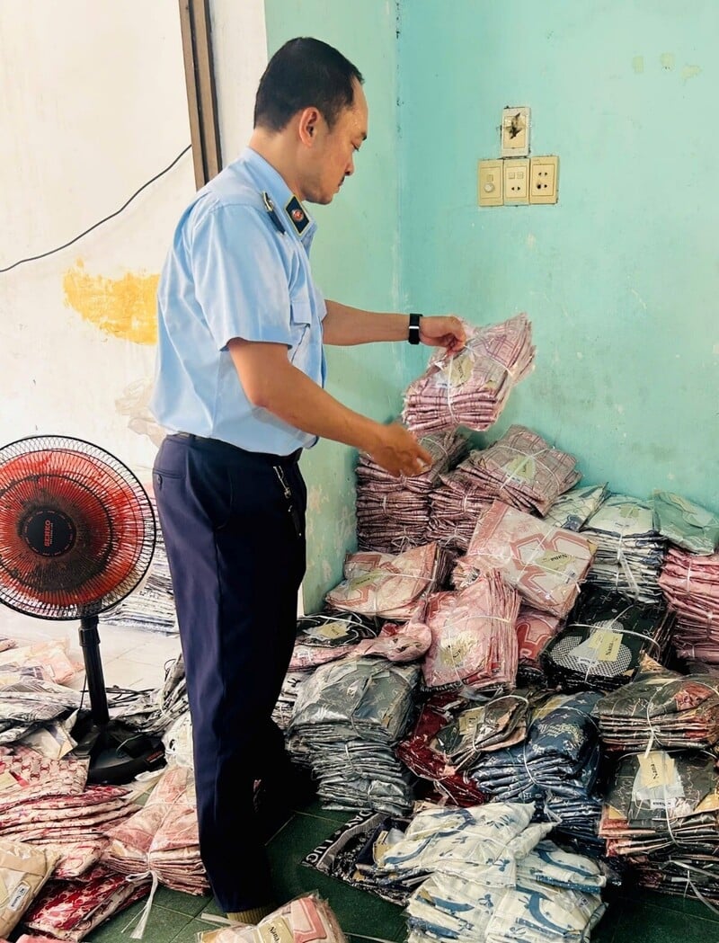 Đội Quản lý thị trường số 9 phát hiện 700 bộ quần áo "3 không". Ảnh: QLTT Đà Nẵng