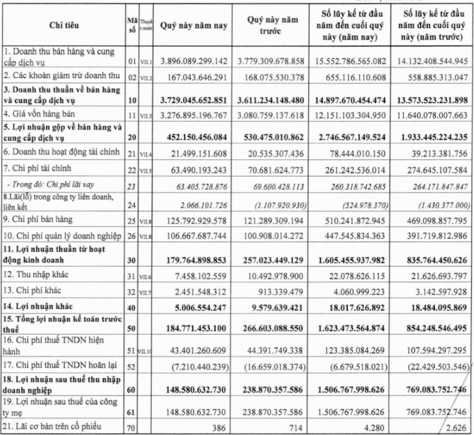 margin: 15px auto;" />Trong kỳ, doanh thu tài chính gần như không thay đổi, duy trì quanh mức 21 tỷ đồng. Ở chiều ngược lại, chi phí tài chính được tiết giảm khoảng 10%, trong khi các khoản thu – chi khác không ghi nhận biến động đáng kể. Dù vậy, áp lực từ hoạt động cốt lõi khiến Dabaco chỉ ghi nhận lợi nhuận sau thuế 148 tỷ đồng trong quý cuối năm, giảm gần 38% so với cùng kỳ.