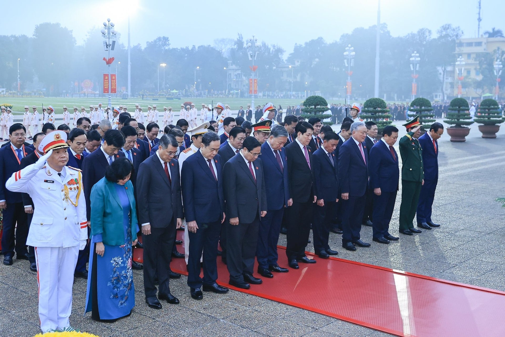(Banker.vn) Sáng 19/1, trước giờ khai mạc phiên trù bị Đại hội đại biểu toàn quốc lần thứ XIV của Đảng Cộng sản Việt Nam, các đồng chí lãnh đạo Đảng, Nhà nước và đại biểu dự Đại hội do Tổng Bí thư Tô Lâm dẫn đầu đã đặt vòng hoa, vào Lăng viếng Chủ tịch Hồ Chí Minh.