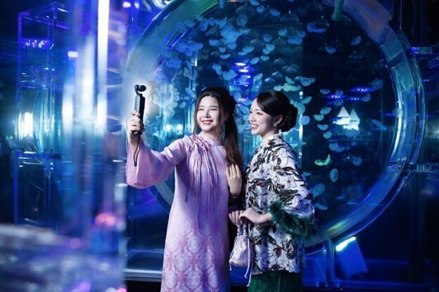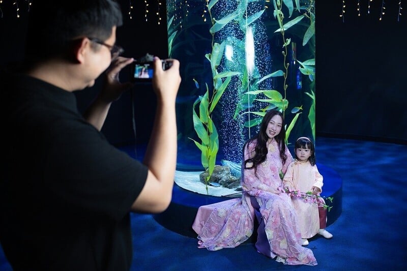 Bên cạnh đó, thủy cung cũng dần trở thành điểm hẹn quen thuộc của nhiều gia đình, cặp đôi và bạn trẻ khi muốn lưu giữ những khoảnh khắc đáng nhớ trong không gian độc đáo giữa lòng Thủ đô.