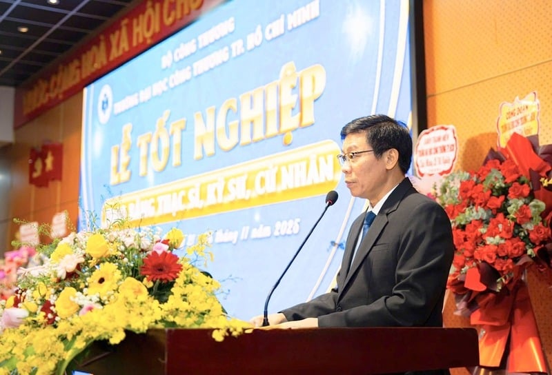 Phát biểu tại buổi lễ, PGS.TS. Nguyễn Xuân Hoàn - Hiệu trưởng nhà trường chúc mừng và ghi nhận nỗ lực của hơn 3.000 tân thạc sĩ, kỹ sư, cử nhân đã bền bỉ vượt qua thử thách để đạt được thành quả hôm nay. Thầy gửi lời tri ân đến gia đình và đội ngũ giảng viên đã đồng hành cùng các em sinh viên.
