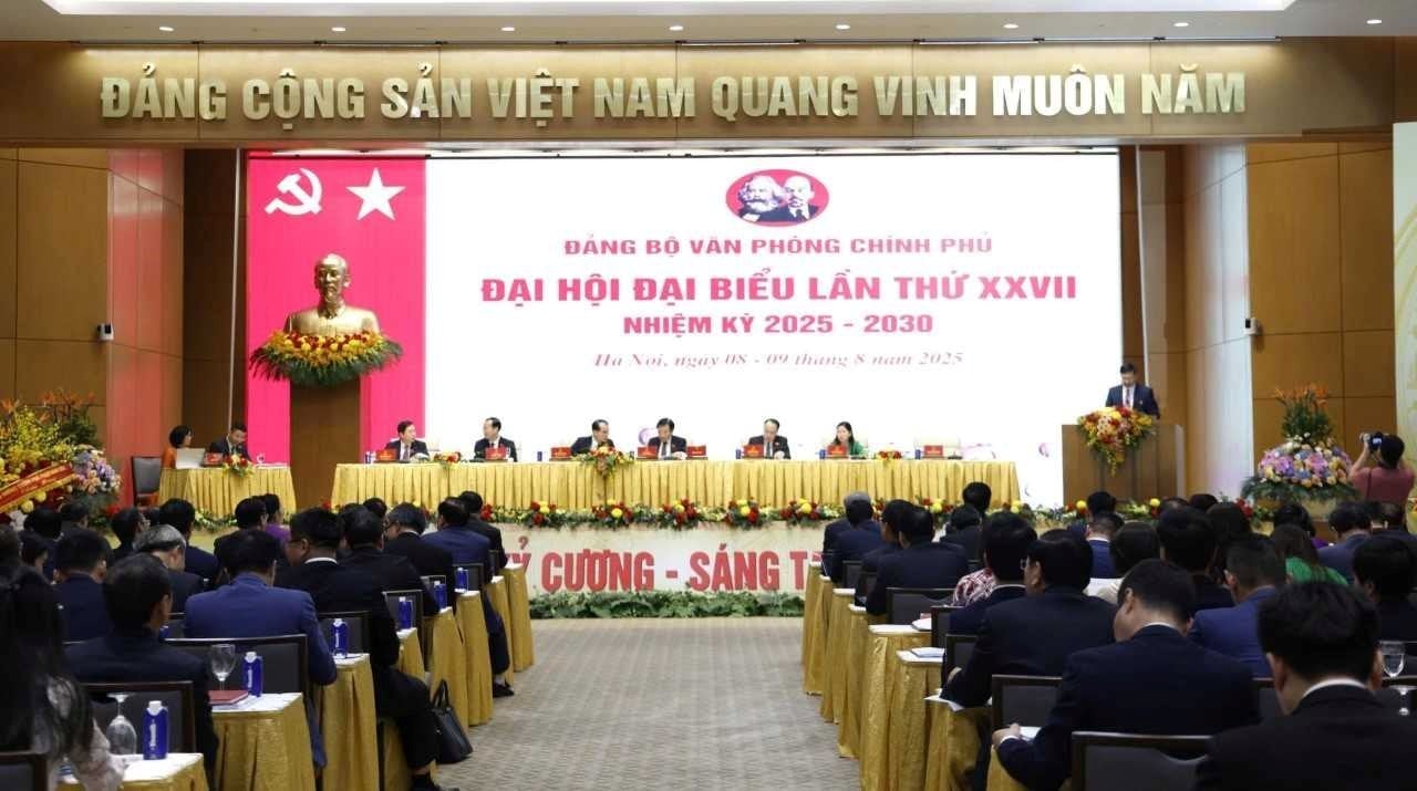 Thứ nhất, Đại hội tiến hành tổng kết, đánh giá kết quả thực hiện Nghị quyết Đại hội Đảng bộ Văn phòng Chính phủ lần thứ 26 nhiệm kỳ 2020-2025 và trên cơ sở đó, đề ra phương hướng, mục tiêu, nhiệm vụ cho nhiệm kỳ 2025-2030.