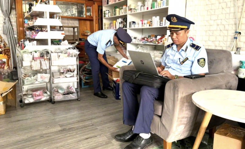 Lực lượng Quản lý thị trường Đắk Lắk kiểm tra một cơ sở kinh doanh ở địa bàn. Ảnh: Thu Hà.