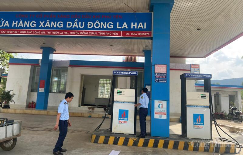 Lực lượng quản lý thị trường kiểm tra cửa hàng kinh doanh xăng dầu ở phía Đông tỉnh Đắk Lắk. Ảnh: Vũ Long