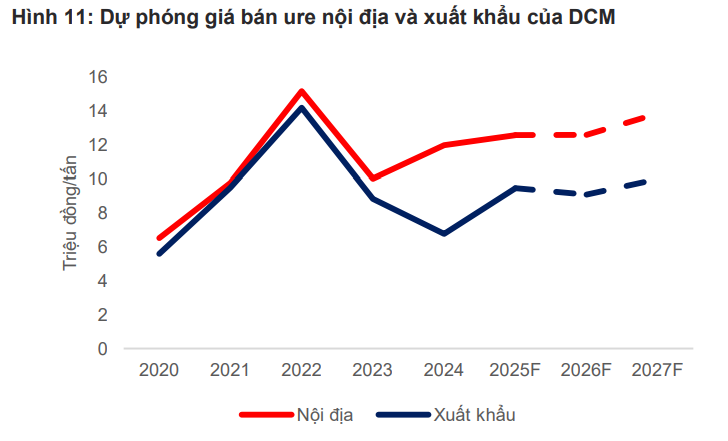 Ở thị trường nội địa, quý IV luôn là mùa nhu cầu cao điểm phục vụ vụ Đông – Xuân, do đó mức tiêu thụ sẽ duy trì ổn định ngay cả khi xuất khẩu tăng mạnh. Với lợi thế từ vị trí địa lý, hệ thống phân phối và năng lực sản xuất 800.000 tấn urê/năm, DCM được dự báo tiếp tục giữ ổn định sản lượng tiêu thụ trong giai đoạn thị trường khan cung.