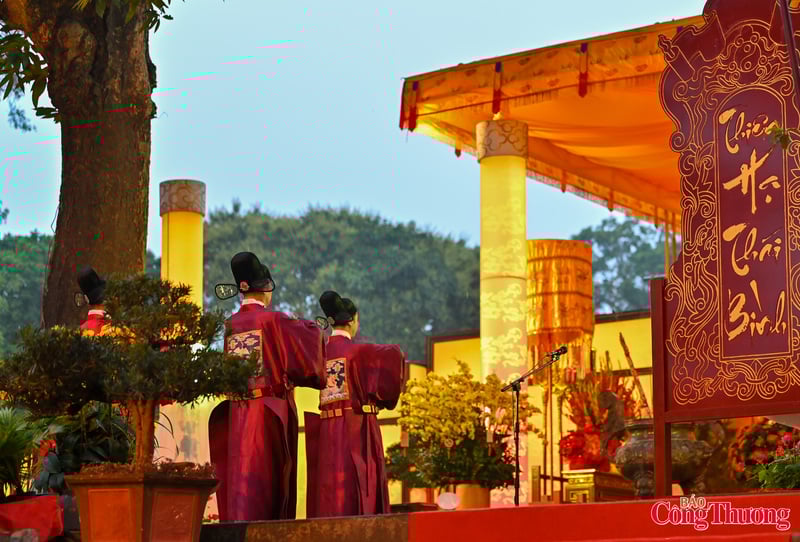 Trước thềm Rồng, Điện Kính Thiên - khu di tích Hoàng thành Thăng Long, các đại biểu đã tiến hành nghi lễ dâng hương và tưởng nhớ các bậc tiên đế, bậc hiền tài và các thế hệ cha ông đã đổ bao nhiêu xương máu để gìn giữ, bảo vệ non sông nước Việt; báo cáo với các bậc tiền nhân những thành tựu nổi bật, toàn diện của đất nước trong năm qua.