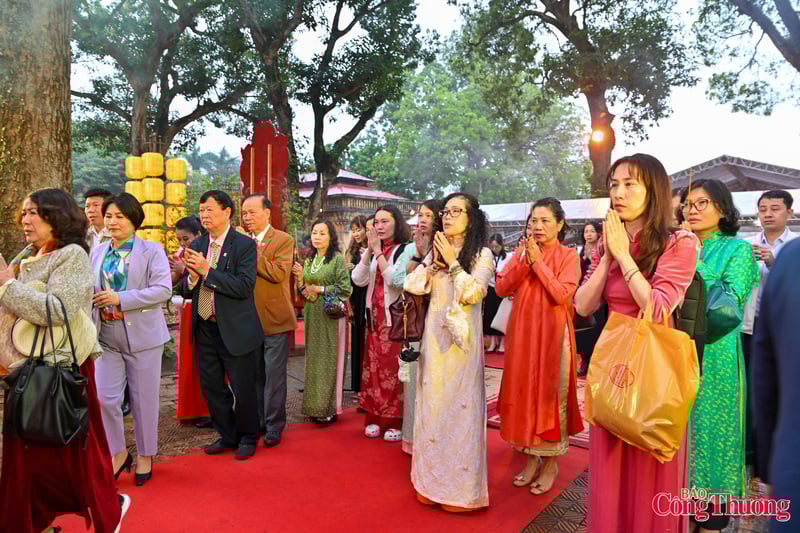 Các đại biểu và du khách dâng hương, dâng hoa, bày tỏ lòng thành kính đối với tổ tiên, các bậc tiền nhân đã có công dựng nước và giữ nước.