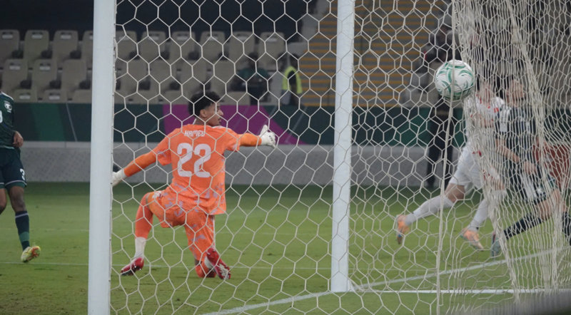 Ở chiều ngược lại, U23 Saudi Arabia cũng cho thấy sự nguy hiểm trong những tình huống cố định và bóng bổng. Cuối hiệp một, từ một pha treo bóng vào vòng cấm, Thamer có đủ khoảng trống để bật cao đánh đầu. Tuy nhiên, cú dứt điểm bằng đầu của cầu thủ này lại đưa bóng trúng cột dọc, sau đó thủ môn Trung Kiên kịp thời phản xạ, hóa giải tình huống nguy hiểm. Hiệp đấu đầu tiên khép lại mà không có bàn thắng nào được ghi, phản ánh đúng cục diện cân bằng trên sân.
