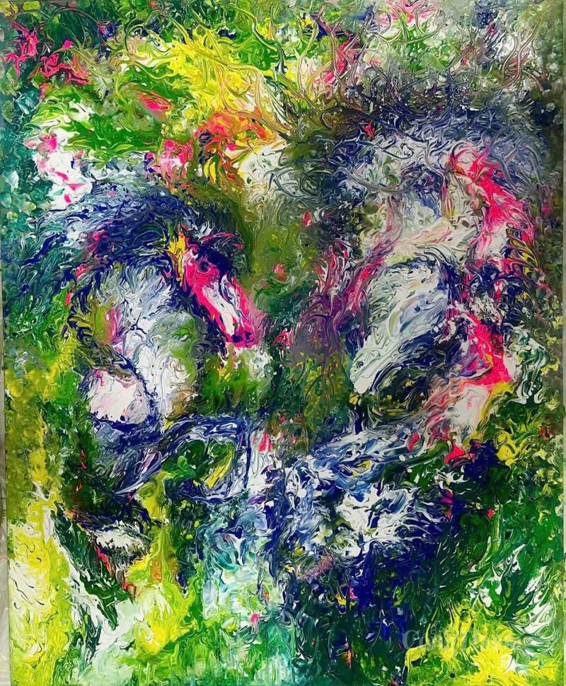 "Thay vì khai thác hình tượng ngựa theo lối tạo hình quen thuộc, tôi tiếp cận bằng ngôn ngữ trừu tượng biểu hiện. Trong quá trình sáng tác, tôi để bản năng dẫn dắt, tìm ra điểm nhấn từ những mảng màu, từ cảm xúc nội tâm, để hình tượng ngựa hiện lên như một biểu trưng hơn là một hình ảnh cụ thể" - họa sĩ Lê Thu Huyền nói.