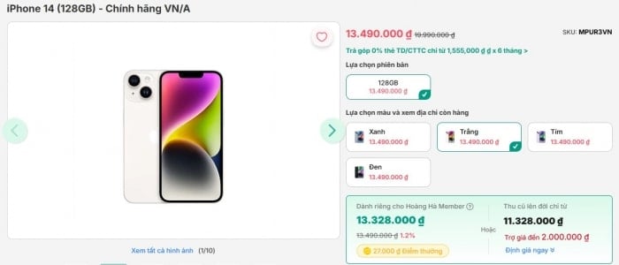 iPhone 14 – 128GB: từ 13,49 triệu đồng