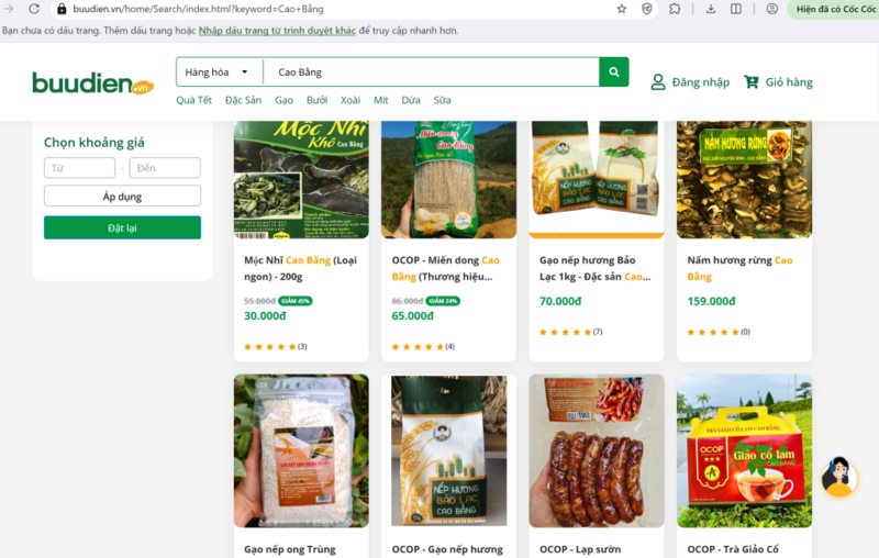 Việc đưa các sản phẩm OCOP lên các sàn thương mại điện tử như nongsan.buudien.vn hay sàn địa phương Caobangtrade.vn đã giúp người dân tiếp cận khách hàng nhanh chóng và hiệu quả, giảm chi phí trung gian, đồng thời nâng cao giá trị và uy tín sản phẩm. Nhiều sản phẩm đặc trưng của tỉnh như miến dong, bún khô, lạp sườn, thịt lợn hun khói, gạo nếp Pì Pất đã được tiêu thụ rộng rãi, góp phần tăng thu nhập bền vững cho người dân.