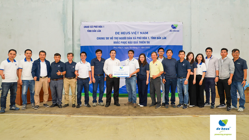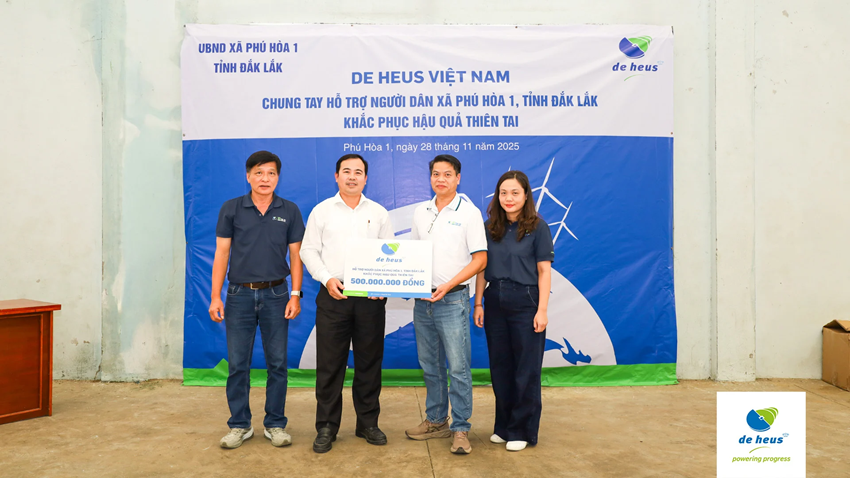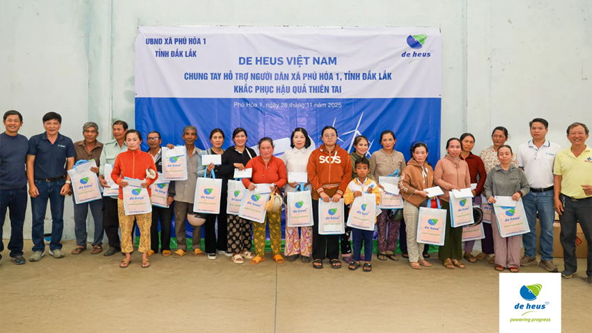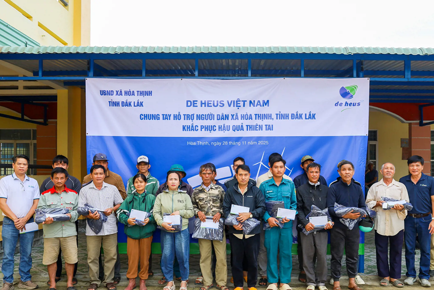 Ngày 28/11, đại diện De Heus Việt Nam đã trực tiếp có mặt tại các xã Hòa Thịnh và Phú Hòa 1 thuộc tỉnh Đắk Lắk (trước đây là địa bàn thuộc Phú Yên) để trao tặng 1 tỷ đồng cùng hàng trăm phần quà thiết yếu, bao gồm áo khoác và áo thun. Những phần quà được chuẩn bị chu đáo và chuyển tận tay người dân, giúp bà con sớm khắc phục một phần khó khăn trước mắt.