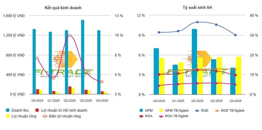 Theo báo cáo tài chính hợp nhất quý 4/2025, Tổng Công ty CP Dệt may Hòa Thọ (HOSE: HTG) ghi nhận doanh thu thuần đạt gần 1.307 tỷ đồng, giảm nhẹ so với cùng kỳ nhưng vẫn duy trì quy mô lớn trong nhóm doanh nghiệp dệt may. Kết quả này cho thấy hoạt động sản xuất kinh doanh của doanh nghiệp vẫn giữ được nhịp vận hành trong giai đoạn cuối năm, thời điểm ngành dệt may tiếp tục đối mặt với biến động chi phí đầu vào và sức cầu trên các thị trường xuất khẩu chủ lực.