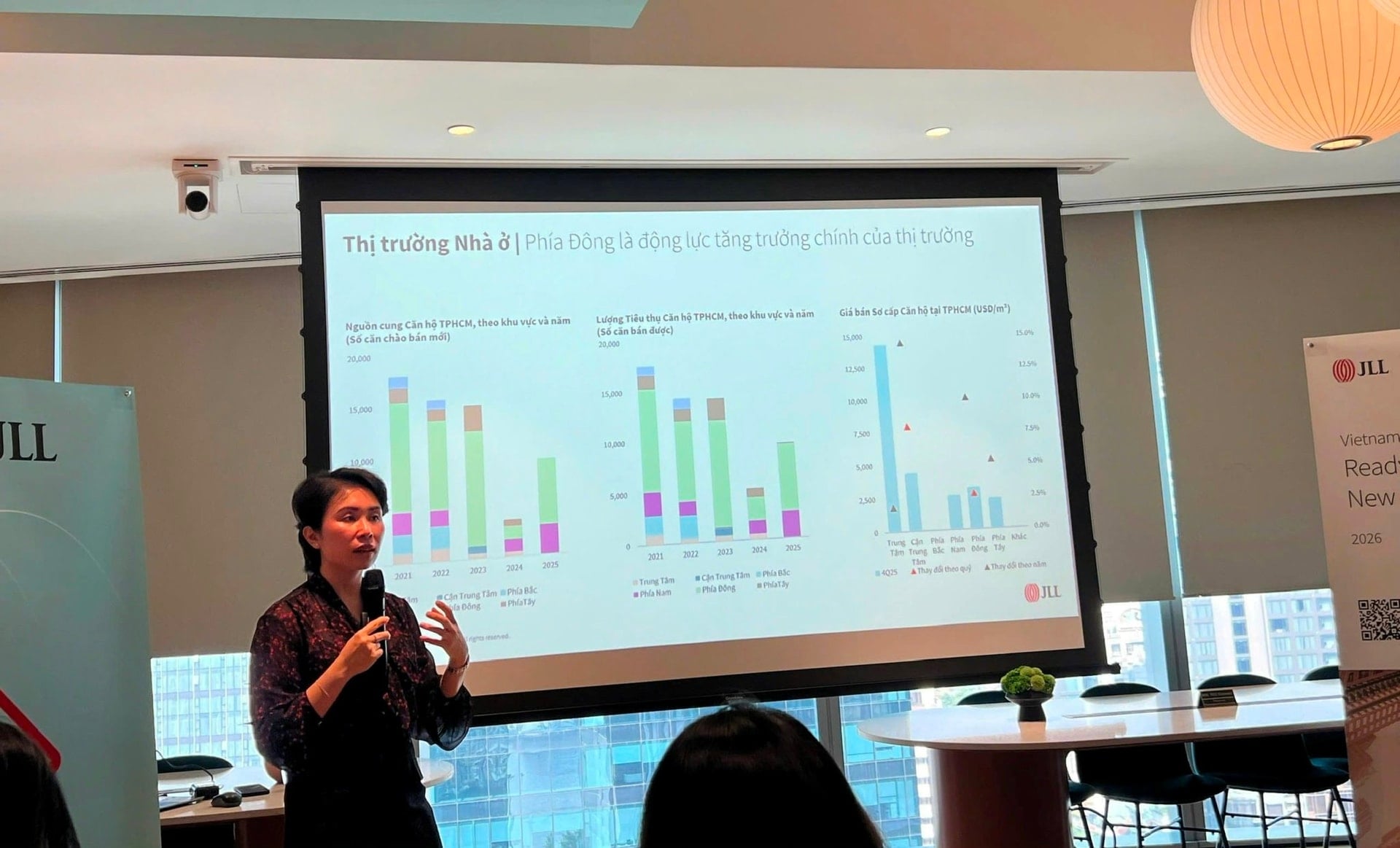 (Banker.vn) Bà Lê Thị Huyền Trang, Tổng giám đốc JLL Việt Nam nhấn mạnh, bước sang năm 2026, thị trường bất động sản Việt Nam được dự báo tiếp tục hưởng lợi từ nền kinh tế vĩ mô ổn định, tăng trưởng FDI bền vững, môi trường pháp lý ngày càng minh bạch và hệ thống hạ tầng liên kết vùng hoàn thiện.