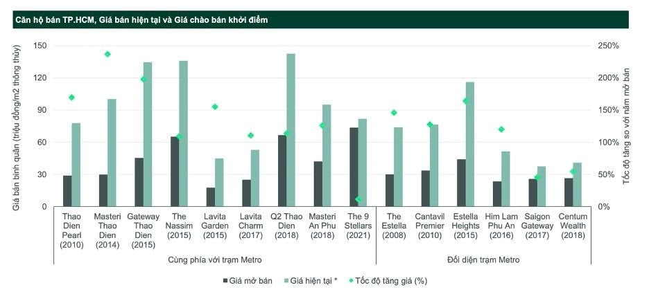Các giá trị này đã được minh chứng ở một số dự án bất động sản dọc Xa lộ Hà Nội - nơi có tuyến Metro số 1 (Bến Thành - Suối Tiên) chạy qua. Theo đó, các dự án như Cantavil Premier, Estella Heights, Masteri Thảo Điền… nhờ gần tuyến hạ tầng trọng điểm đã thu hút được dòng người đến sinh sống, từ đó tăng giá trị thương mại cho khối đế dưới chân toà nhà. Chỉ sau thời gian ngắn đi vào hoạt động, các dự án này hình thành cụm giao thương sầm uất với trung tâm thương mại, dịch vụ ẩm thực và mua sắm nhộn nhịp. Yếu tố tạo thị đã kéo theo mặt bằng giá cho thuê shophouse tại đây tăng nhanh, đồng thời nâng cao giá trị căn hộ tại dự án cũng như bất động sản khu vực.
