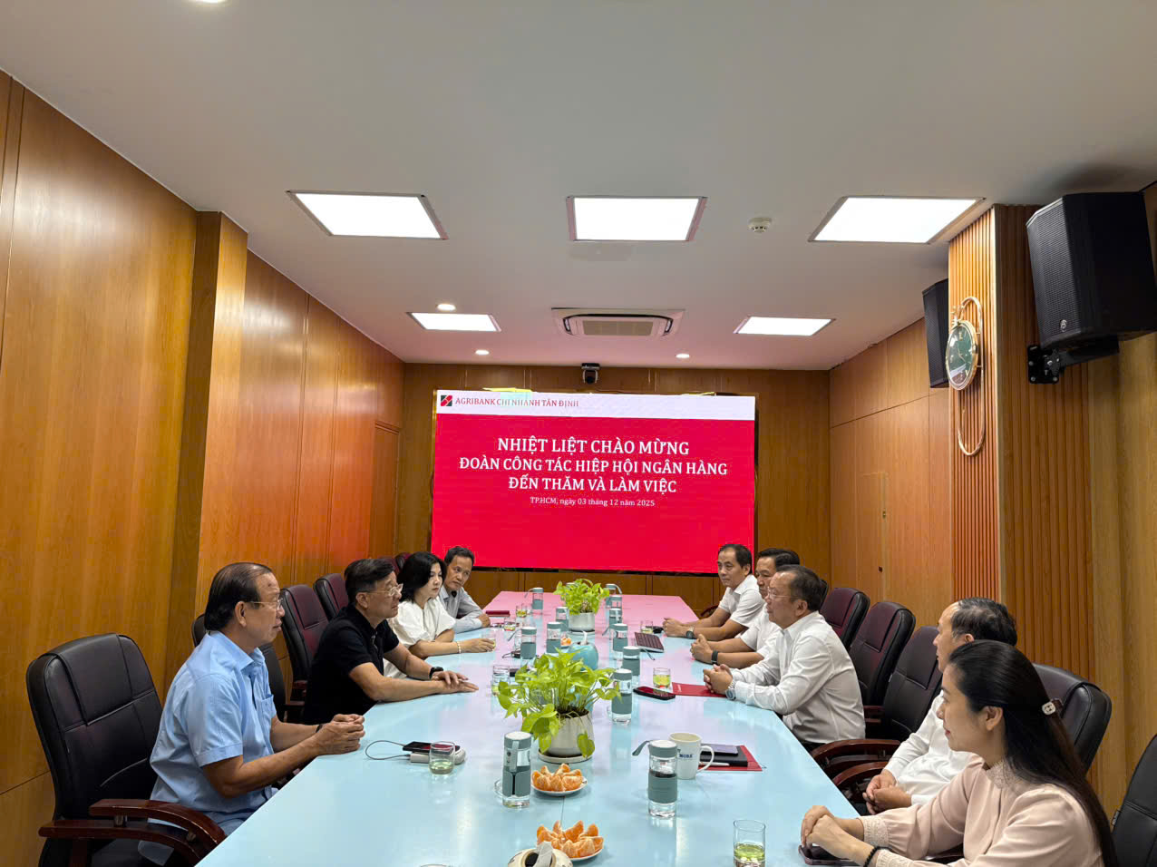 Tiếp theo, vào sáng ngày 3/12, đoàn công tác Hiệp hội Ngân hàng Việt Nam đã có buổi làm việc với Agribank chi nhánh Tân Định, một trong những chi nhánh quan trọng của Agribank tại TP. Hồ Chí Minh đã có nhiều đóng góp vào việc cung cấp các sản phẩm tài chính cho khách hàng cá nhân và doanh nghiệp trong khu vực.