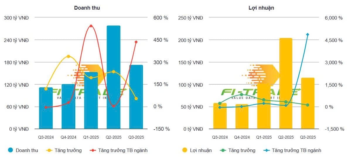 Về kết quả kinh doanh, HGM bứt phá mạnh từ năm 2024 và đặc biệt là 9 tháng đầu năm 2025. Cụ thể trong 9 tháng, HGM có doanh thu đạt 606 tỷ đồng, tăng 144% so với cùng kỳ, trong khi lợi nhuận sau thuế tăng tới 232%, đạt 422 tỷ đồng. Năm 2024, công ty từng ghi nhận 370 tỷ đồng doanh thu và 183 tỷ đồng lợi nhuận sau thuế, nền tảng tăng trưởng đã rất cao so với giai đoạn trước.