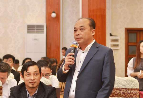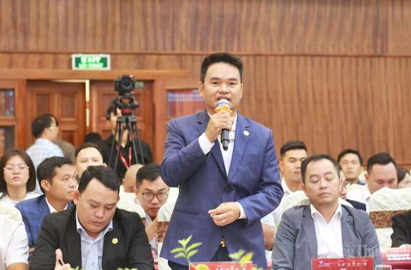 Ông Nguyễn Văn Thành, Chủ tịch Hiệp hội doanh nghiệp Thanh Hoá, Tổng giám đốc Tổng công ty CP Hợp Lực trình bày ý kiến tại phiên thảo luận.
