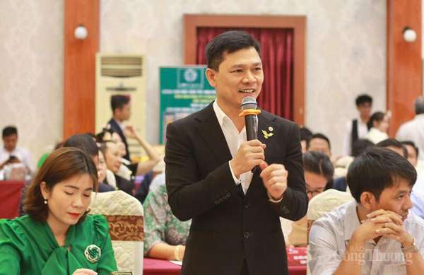 Ông Phan Thanh Thiên, Phó Chủ tịch Hội Doanh nhân trẻ Việt Nam, Phó Trưởng Ban Tổ chức VPSF 2025, Chủ tịch Hội Doanh nhân trẻ Gia Lai phát biểu tại phiên đối thoại. Ảnh: Hiền Mai