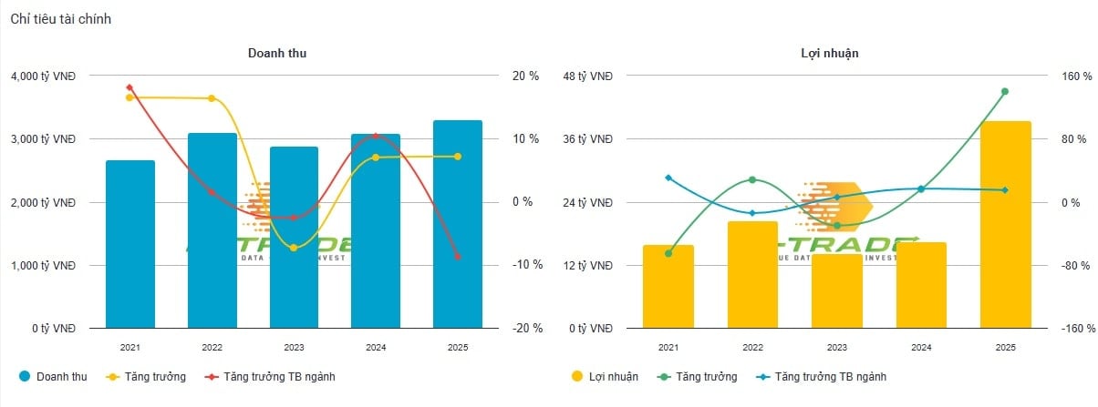 Nhờ sự kết hợp của hai yếu tố này, lợi nhuận sau thuế năm 2025 đạt khoảng 39,48 tỷ đồng, tăng 23,02 tỷ đồng so với mức 16,45 tỷ đồng của năm trước. Tương ứng, lợi nhuận tăng tới 139,91%, cho thấy mức cải thiện đáng kể về hiệu quả hoạt động.
