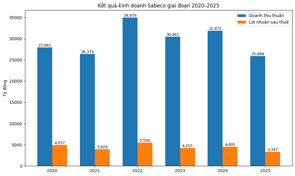 Lũy kế cả năm 2025, Sabeco ghi nhận doanh thu thuần gần 25.888 tỷ đồng, giảm 19% so với năm 2024. Ngược lại, lợi nhuận sau thuế đạt 3.347 tỷ đồng, tăng nhẹ khoảng 2% so với cùng kỳ. So với kế hoạch đề ra, doanh nghiệp mới hoàn thành khoảng 82% mục tiêu doanh thu (31.641 tỷ đồng) và 69% kế hoạch lợi nhuận sau thuế (4.835 tỷ đồng).