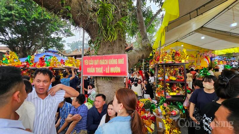 Đại diện cửa hàng sắp lễ, viết sớ Mạnh Thế nằm trước cổng đền cho biết, vào dịp cao điểm đầu năm, cửa hàng chuẩn bị nhiều loại lễ vật để phục vụ người dân đến cầu tài lộc. Các mâm lễ cơ bản thường có mức giá khoảng 250.000 - 350.000 đồng. Với những mâm lễ lớn hơn, giá có thể lên tới khoảng 1 triệu đồng, tùy theo nhu cầu của người đi lễ. Nhiều du khách cũng chủ động chuẩn bị lễ vật từ trước và mang theo khi đến đền.