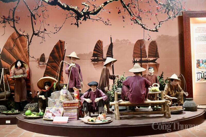 Không gian Tết xưa được tái hiện sinh động tại Trung tâm Bảo tồn tranh dân gian Đông Hồ qua hình ảnh chợ quê ven sông đậm nét truyền thống.