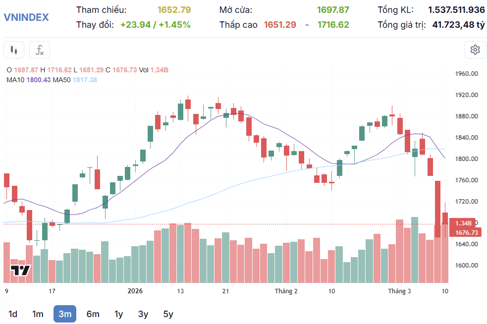Bước sang phiên chiều, thử thách thực sự xuất hiện khi áp lực điều chỉnh bất ngờ dâng cao ngay từ giờ giao dịch đầu tiên. Làn sóng bán tháo nhanh chóng đẩy VN-Index lùi sâu xuống mốc 1.651 điểm, xóa sạch mọi thành quả tăng điểm của phiên sáng. Tuy nhiên, tại thời điểm này, lực cầu bền bỉ từ các nhóm ngành xương sống như ngân hàng, thép và tiêu dùng đã kịp thời xuất hiện để kéo chỉ số.