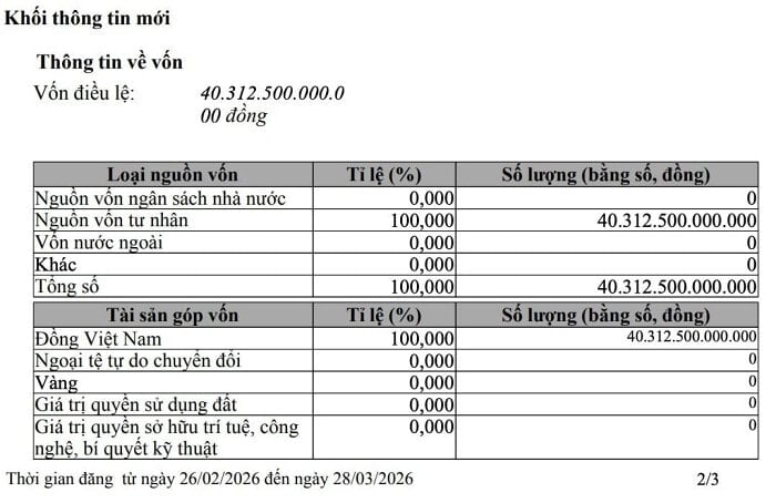 Chỉ chưa đầy hai tuần sau, đến ngày 26/2, công ty này tiếp tục điều chỉnh vốn điều lệ, nâng từ 32.250 tỷ đồng lên hơn 40.312 tỷ đồng, tăng thêm khoảng 20%. Như vậy, quy mô vốn của pháp nhân mới đã vượt mức vốn trước khi điều chỉnh của công ty mẹ.