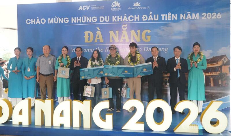 margin: 15px auto;" />Từ 07h00 - 08h00 ngày 01/01 tại Ga đến nội địa, Cảng hàng không quốc tế Đà Nẵng, Sở Văn hoá, Thể thao và Du lịch TP. Đà Nẵng tổ chức chào đón những du khách đầu tiên đến với thành phố trong ngày đầu năm mới 2026 trên chuyến bay VN157 từ Hà Nội do Hãng hàng không Vietnam Airlines khai thác.