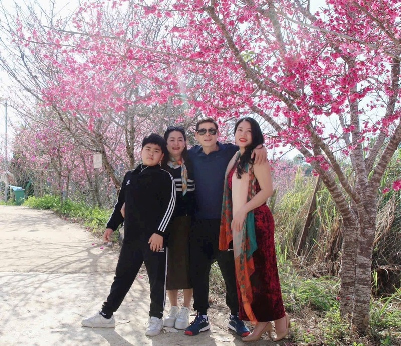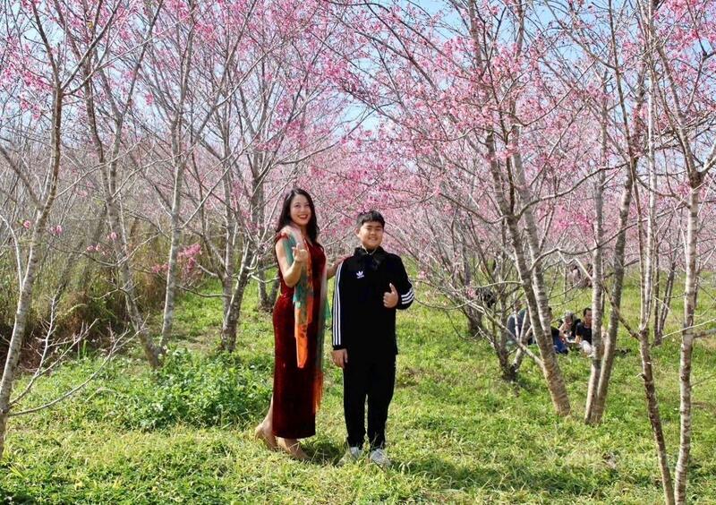 Người dân và du khách chụp ảnh tại điểm du lịch vườn hoa anh đào. Ảnh: CTV