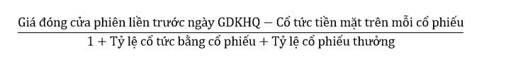 Trong trường hợp doanh nghiệp đồng thời chi trả cổ tức tiền mặt và cổ tức bằng cổ phiếu hoặc cổ phiếu thưởng, giá tham chiếu trong ngày giao dịch không hưởng quyền được xác định theo công thức sau: