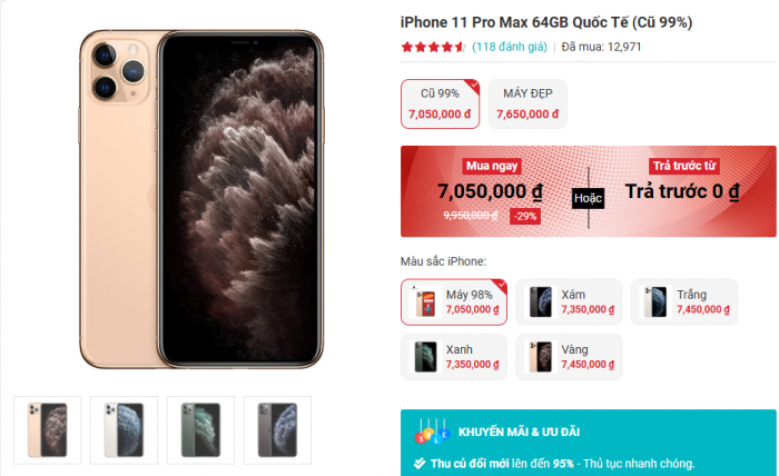 margin: 15px auto;" />Ở thời điểm cuối tháng 12, nhiều đại lý cho biết nguồn hàng iPhone 11 Pro Max vẫn có nhưng bắt đầu khan hiếm, chủ yếu là máy đã qua sử dụng với tình trạng còn tốt. Giá bán dao động từ 7 triệu đồng cho bản 64GB, 8 triệu cho bản 256GB và khoảng 9 triệu đồng nếu người dùng may mắn tìm được bản 512GB. Đây là mức giá thấp chưa từng thấy đối với một thiết bị Pro Max sở hữu tới ba camera và màn hình OLED 6,5 inch cao cấp.