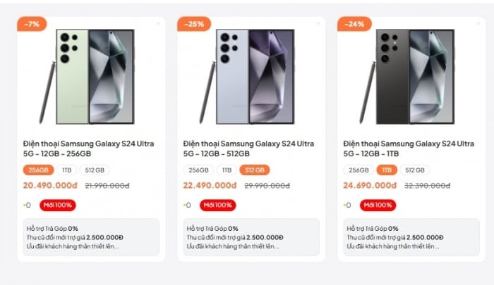 margin: 15px auto;" />Theo ghi nhận tại các đại lý bán lẻ, giá Galaxy S24 Ultra hiện đã tiến sát mốc 20 triệu đồng là mức giá vốn trước đây chỉ dành cho smartphone cận cao cấp: