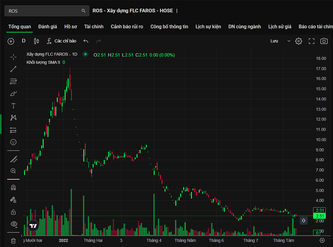 Tuy nhiên, từ năm 2018, cổ phiếu ROS bắt đầu xu hướng giảm kéo dài. Đà suy giảm trở nên rõ rệt hơn sau các biến cố liên quan đến hệ sinh thái FLC, kéo theo thanh khoản sụt giảm và thị giá lao dốc về vùng thấp. Đến tháng 9/2022, cổ phiếu này bị hủy niêm yết do vi phạm quy định về công bố thông tin.