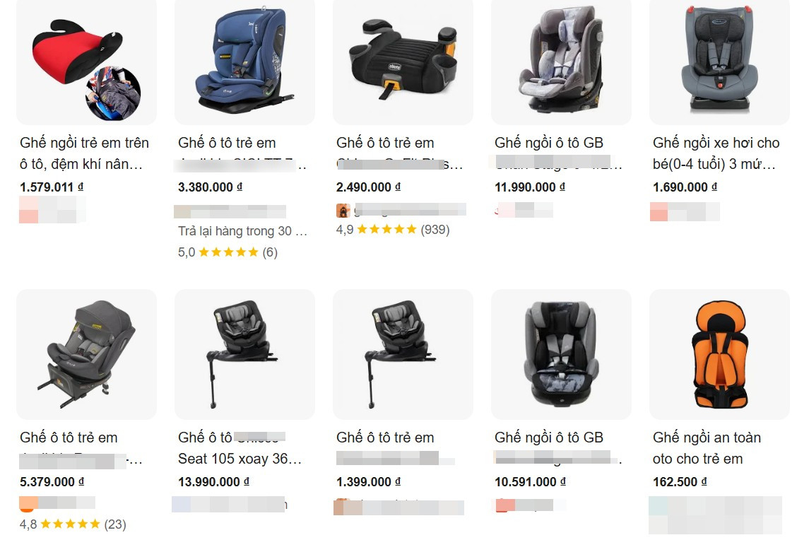 Trên các sàn thương mại điện tử, ghế thuộc phân khúc phổ thông – khoảng 2–3 triệu đồng là nhóm được tìm kiếm nhiều nhất. Đây là các mẫu nhập khẩu từ Trung Quốc hoặc thương hiệu nội địa như Animo (Con Cưng), Zaracos, ReeBaby. Ngoài ra, đệm nâng, đai an toàn đơn giản giá chỉ vài trăm nghìn đồng cũng được tiêu thụ mạnh nhờ gọn nhẹ và chi phí thấp.