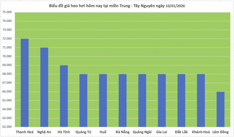 Các địa phương còn lại giữ nguyên mức giá ổn định so với phiên giao dịch hôm qua. Cụ thể, các tỉnh Quảng Trị, Quảng Ngãi, Gia Lai và Đắk Lắk cùng duy trì ở ngưỡng 68.000 đồng/kg. Tỉnh Lâm Đồng tiếp tục giữ mức giá thấp nhất khu vực là 66.000 đồng/kg.
