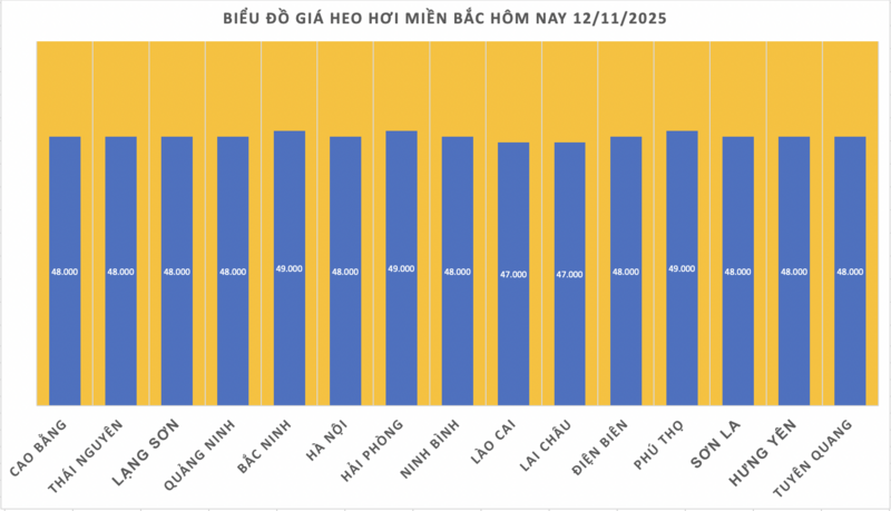 Các địa phương khác như Thái Nguyên, Lạng Sơn, Ninh Bình duy trì ổn định ở mức 48.000 đồng/kg.