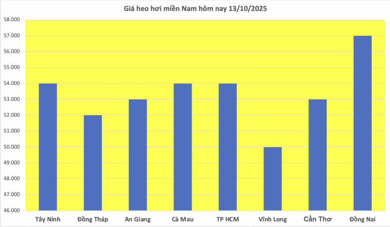Đồng Tháp và An Giang hiện đang thu mua ở mức 52.000 đồng/kg và 53.000 đồng/kg, trong khi Vĩnh Long tiếp tục là địa phương có giá thấp nhất khu vực với 50.000 đồng/kg.