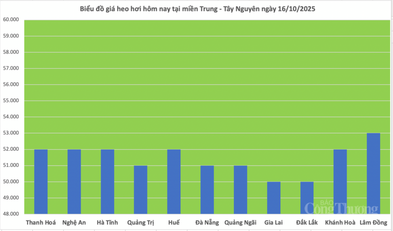 Theo đó, giá heo tại Thanh Hóa, Nghệ An, Hà Tĩnh, Huế và Khánh Hòa cùng giữ mức 52.000 đồng/kg. Quảng Trị, Đà Nẵng và Quảng Ngãi giao dịch ở 51.000 đồng/kg, trong khi Gia Lai và Đắk Lắk duy trì mức thấp nhất khu vực 50.000 đồng/kg. Riêng Lâm Đồng hiện có giá cao nhất đạt 53.000 đồng/kg.