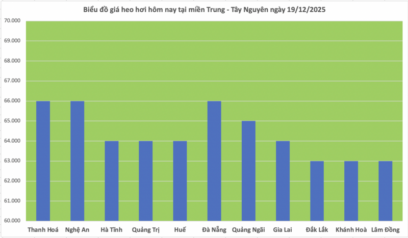 Các địa phương khác không có sự thay đổi về giá. Trong đó, Quảng Ngãi neo ở mức 65.000 đồng/kg. Các tỉnh Hà Tĩnh, Quảng Trị, Huế và Gia Lai duy trì ổn định ở mức giá 64.000 đồng/kg. Riêng Đà Nẵng vẫn neo ở mức cao nhất khu vực là 66.000 đồng/kg.