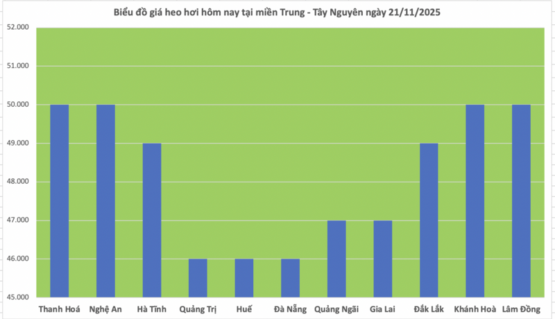 Trong khi đó, các tỉnh thành còn lại giữ giá cả ổn định so với phiên trước: Quảng Trị, Đà Nẵng và Huế ở mức 46.000 đồng/kg; Gia Lai và Đắk Lắk lần lượt ở mức 47.000 đồng/kg và 49.000 đồng/kg.