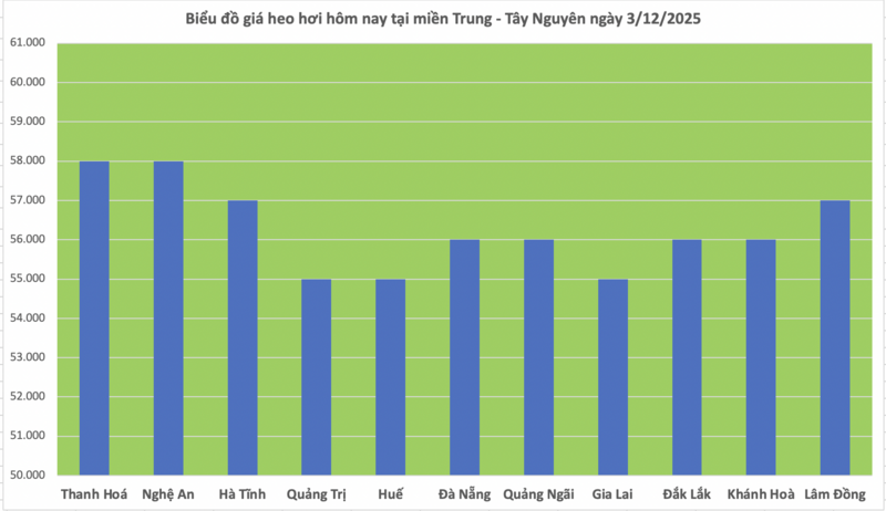 Khu vực miền Trung – Tây Nguyên tăng mạnh tại nhiều khu vực, có nơi tăng đến 4.000 đồng/kg, hiện dao động ở mức 55.000 - 58.000 đồng/kg.