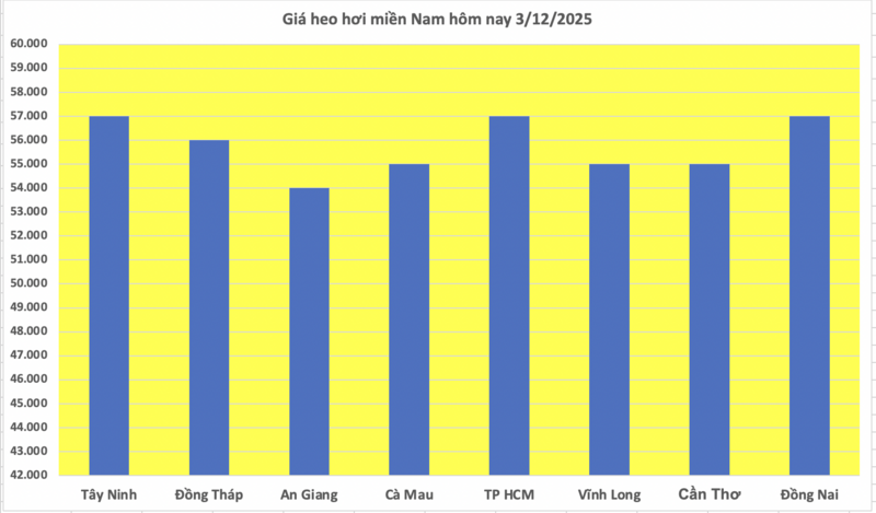 Cụ thể, Đồng Nai, Tây Ninh và TP. Hồ Chí Minh cùng tăng 1.000 đồng/kg, hiện giá thu mua là 57.000 đồng/kg.