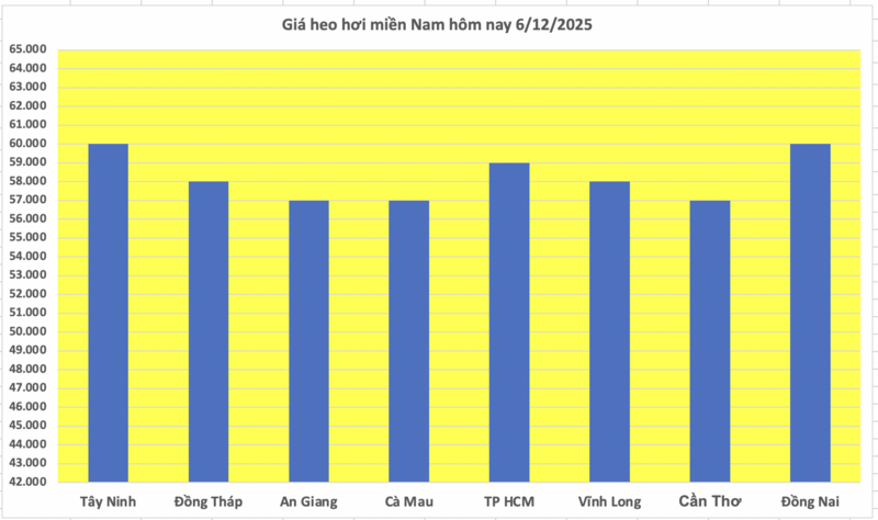 Cụ thể, Đồng Nai và Tây Ninh cùng tăng mạnh 2.000 đồng/kg, đạt mức cao nhất miền là 60.000 đồng/kg. Vĩnh Long cũng tăng 2.000 đồng/kg, đạt 58.000 đồng/kg.