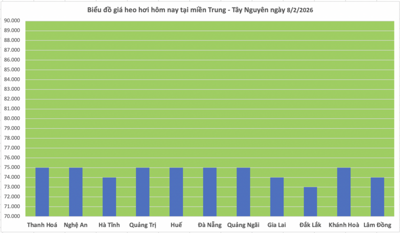 Các địa phương còn lại giữ giá cả ổn định. Trong đó, Thanh Hóa, Nghệ An, Huế, Đà Nẵng, Quảng Ngãi và Khánh Hòa tiếp tục thu mua heo hơi ở mức 75.000 đồng/kg. Hà Tĩnh, Gia Lai và Lâm Đồng duy trì mức 74.000 đồng/kg.