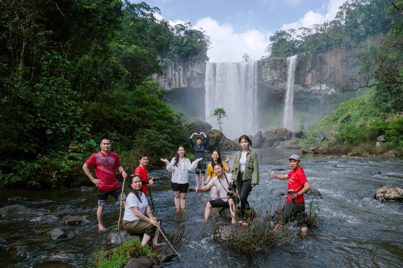 Dòng thác đổ xuống từ nền đá bazan tạo nên khung cảnh vừa hùng vĩ vừa nên thơ. Âm thanh nước chảy hòa cùng tiếng rừng mang đến cảm giác thư thái, phù hợp cho chuyến dã ngoại đầu năm.